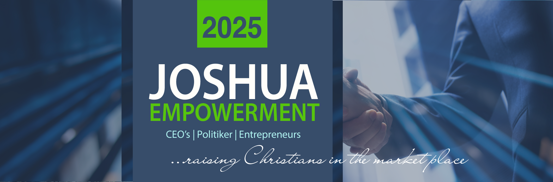 Joshua Empowerment richtet sich an CEOs, Politiker und Selbstständige und angestellte Unternehmer. Durch neue Erkenntnisse und Offenbarungen aus dem Wort Gottes werden Sie geistlich unterstützt sich mit kreativen und innovativen Lösungen auf lokalen und globalen Marktplätzen zu positionieren. Bei Abschluss erhalten Sie ein Zertifikat und werden für Ihre individuelle Berufung gesalbt.